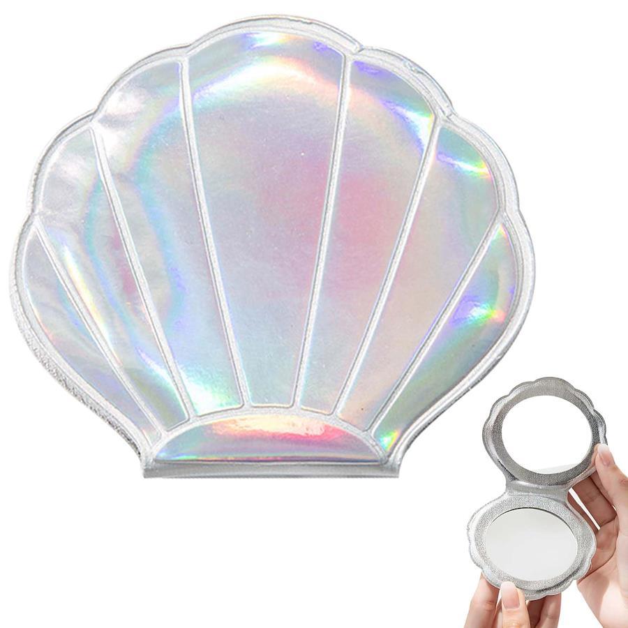 PAVIKE Hand Mirror, Cute, Shatterproof, Compact, Stylish, Shell PU Double-Sided Mirror, Lightweight, Foldable, Easy to Carry