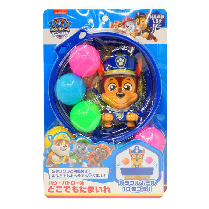 パウ・パトロールのチェイスが付いたボール入れ、カラフルなボールが10個、