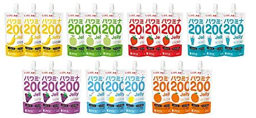 通常1-5営業日で発送:内容量:パワミナ7種×各3個セット/7種(バナナ、メロン、いちご、サイダー、ぶどう、レモンヨーグルト、オレンジ味)/1個120gで200kcal+たんぱく質6gが摂取できます。/栄養補給ゼリー飲料、パウチを使用しているので、持ちやすく携行しやすい。/【アレルゲン表示】乳成分