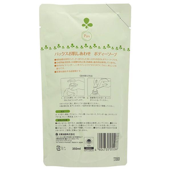【使い方】※本品は詰替用です。・適量をタオルやスポンジ、手のひらに取ってご使用ください。★詰替方法(1)ボトルをおさえ、ポンプの下部をねじるようにはずします。(2)詰替用の口を切り、ゆっくりボトルに注いでください。※ボトルをよく洗い、乾かしてから詰め替えてください。※詰め替え後、パック右下にあるロット記号を切り取るか控えて保管してください。