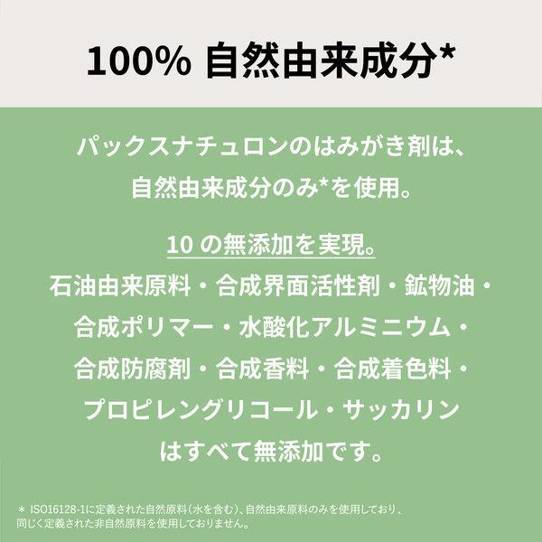 100%自然由来成分!こだわる大人の口臭ケア。緑茶エキス(矯味剤) 配合の石けんはみがきです。●石油由来原料・合成界面活性剤・鉱物油・合成ポリマー・水酸化アルミニウム・合成防腐剤・合成香料・合成着色料・プロピレングリコール・サッカリンはすべて無添加です。●磨いた後も味がわかる!石けん成分は口腔内の粘膜や舌(味蕾)に吸着しにくく、口をゆすぐとサッと洗い流せるので、はみがきの直後に飲食しても後味に違和感が残りません。