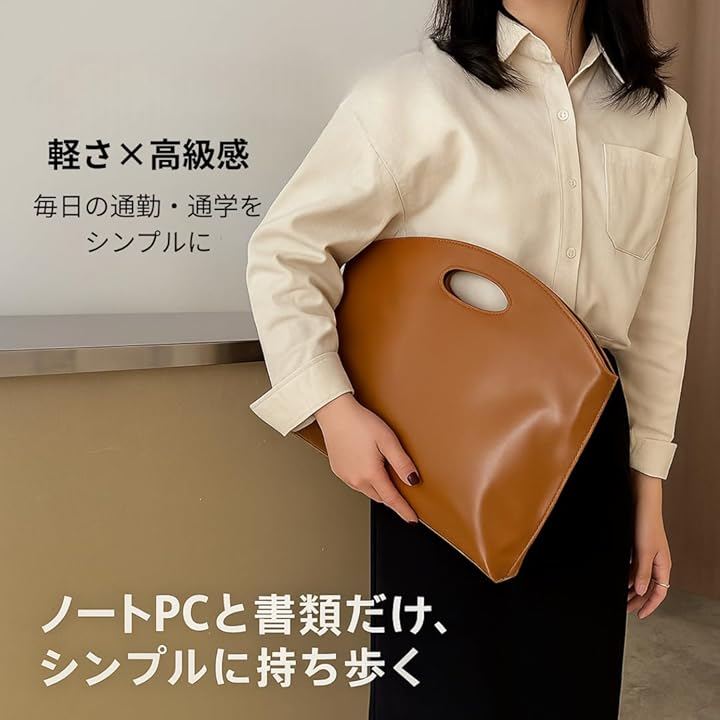 ビジネスシーンやカフェ作業などでA4資料とPCを同時に持ち歩け、外出時の荷物をすっきりまとめられる設計です。