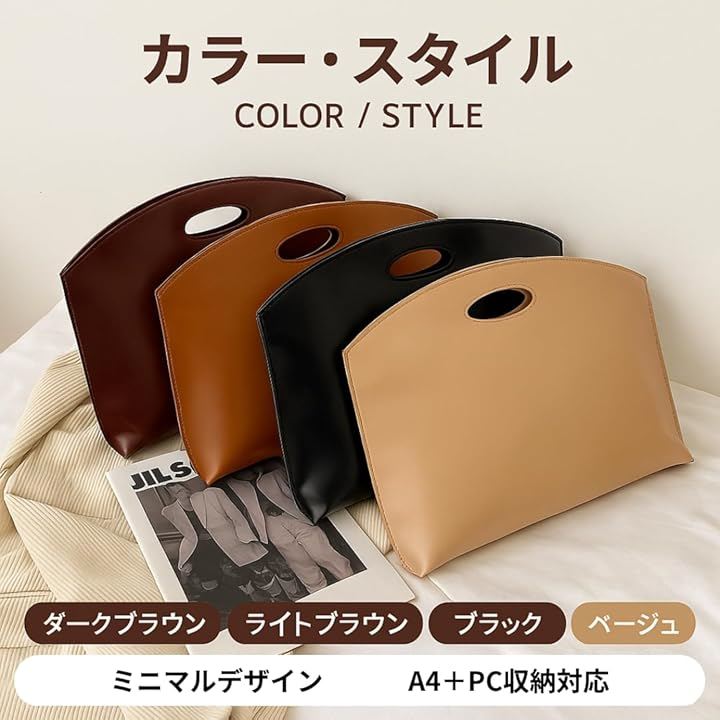 「カラー/スタイル/使用場面」カラーはライトブラウン、ベージュ、ブラック、ダークブラウンの4色展開。