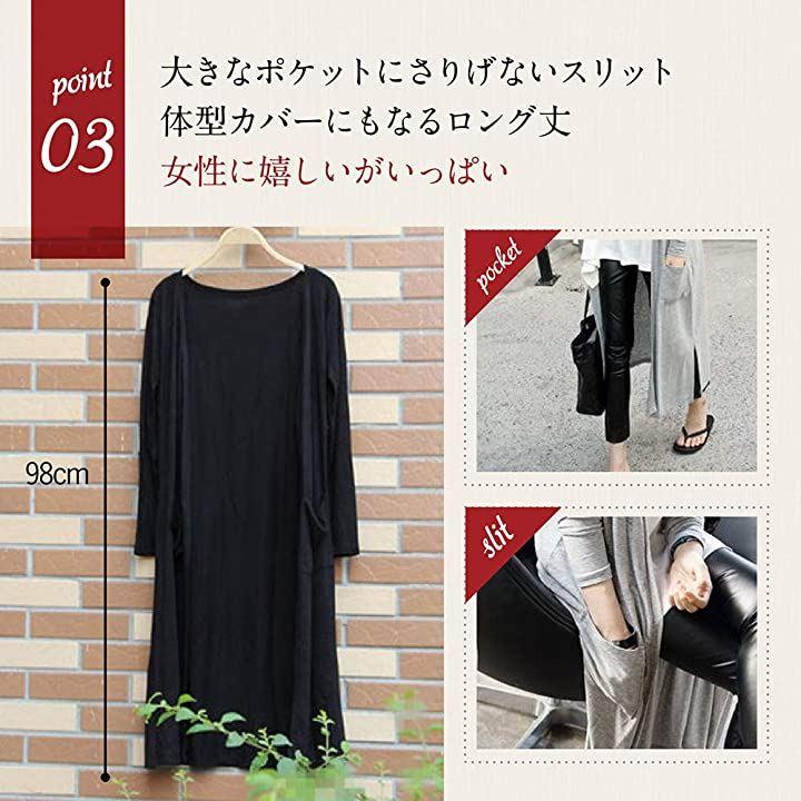 優しい肌触りのエアリー素材で、着心地も軽く、楽ちんなロング丈カーディガン