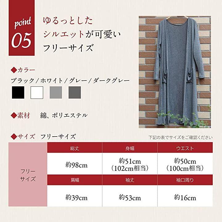 ・「カラー」ブラック/ホワイト/グレー/ダークグレー「素材」綿、ポリエステル「サイズ」「フリーサイズ」:総丈 約98cm/身幅 約51cm(102cm相当)/ウエスト 約50cm(100cm相当)/肩幅 約39cm/袖丈 約53cm/袖口周り 約16cm