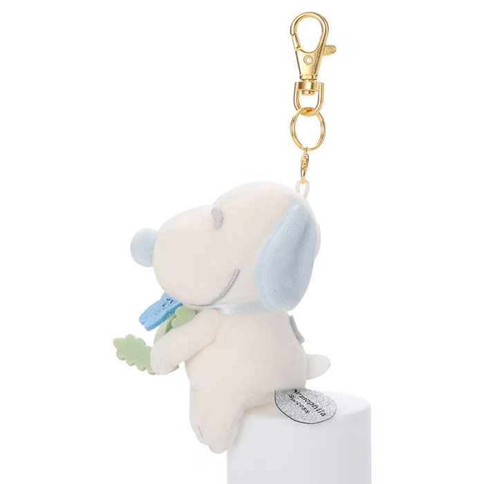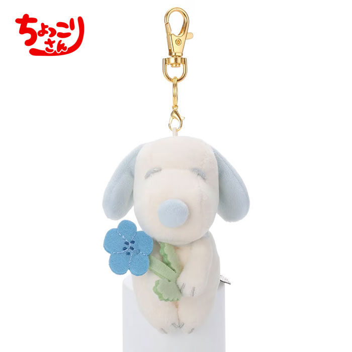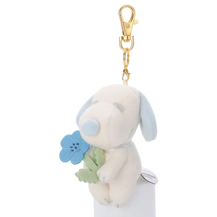 お花を持ったスヌーピーが、ちょっこりと癒しを届けるこのマスコットは、プレゼントとして喜んでいただけるギフトアイテムです。