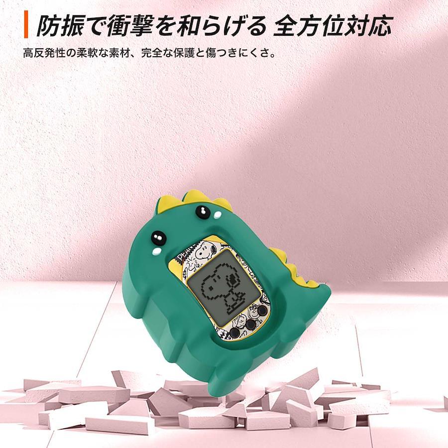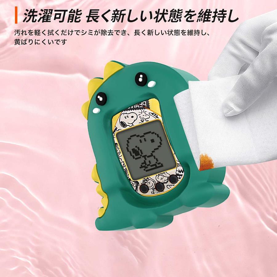 Peanuts Tamagotchi Electronic Pet Toy for Kids, Full-Body Protective Silicone Case [HUKWIMO] with Carabiner, Shockproof, Dustproof, Waterproof, Charging Compatible, Full Protection, Scratch Resistant [Dinosaur]