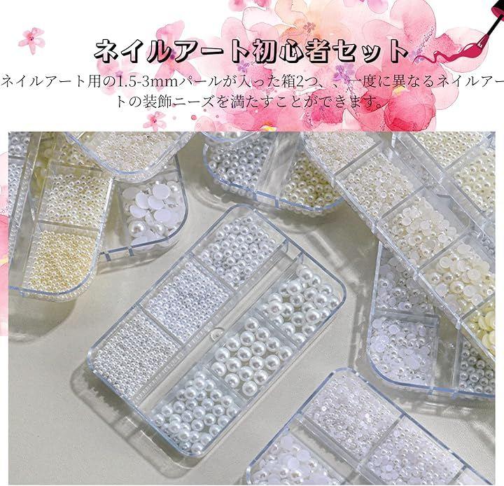 ネイルアート初心者セット:ネイルアート用のパールが入った箱2つ、一度に異なるネイルアートの装飾ニーズを満たすことができます。