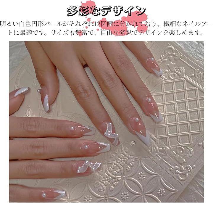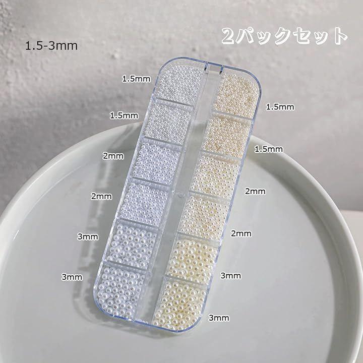 ネイルアート用パール・ラインストーン:明るい白色の円形パール(1.5mm-3.0mm)12区画、繊細なネイル装飾に最適です。