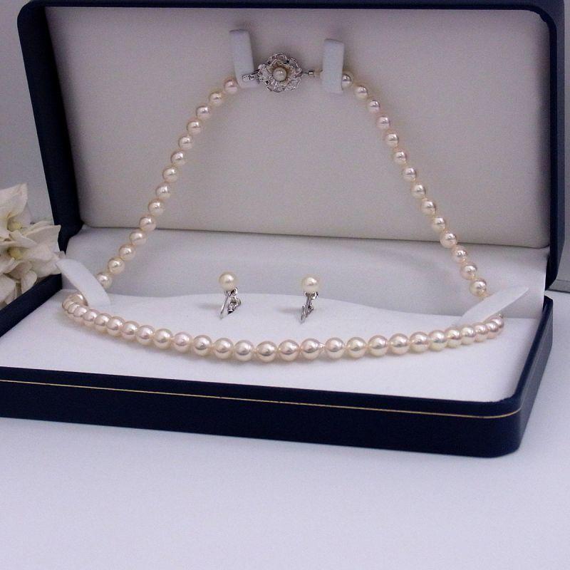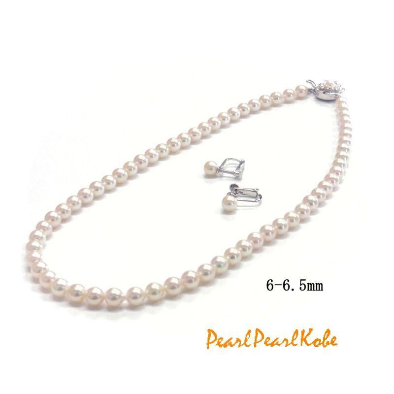 日本産アコヤ真珠ネックレス&イヤリングセットです。サイズは、着けやすい6-6.5mm.です。冠婚葬祭として、また成人を迎えられる方への贈り物としてかかせないジュエリーです。イヤリングはシルバー製ネジです。ピアスは、18金ゴールドか14金ホワイトゴールでです。
