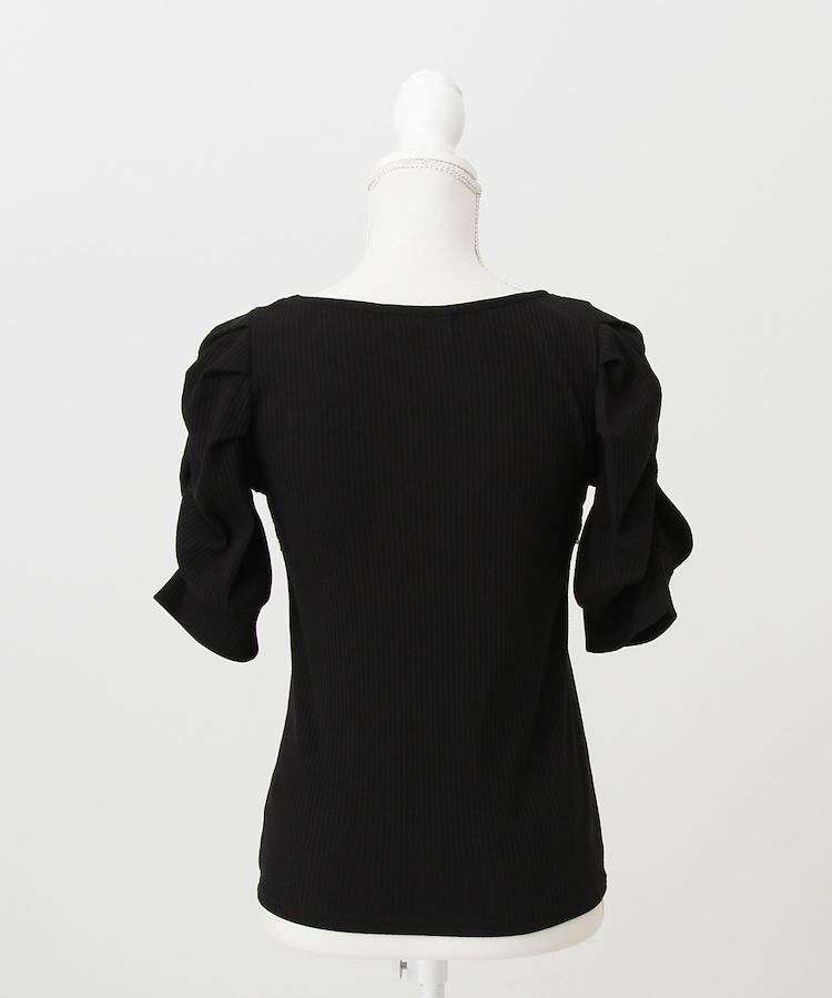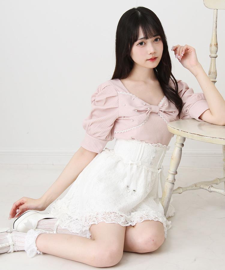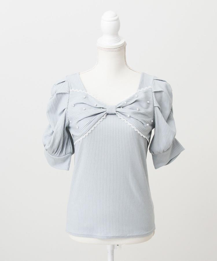 胸元にリボンデザインが大きくあるリブカットトップスです。