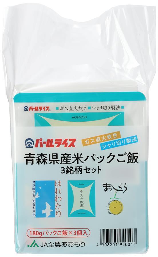 青森県産米3銘柄のおいしさがパックご飯で食べ比べできます。パックご飯は、「ガス直火炊き」・「シャリ切り」製法により、お米を強火で大釜で炊き上げ、炊きあがったあとにシャリ切りし、余分な水分をとばし、ふっくらつややかな、お米本来の味に仕上がっています。特A米の「青天の霹靂」、青森県のお米「つがるロマン」または「はれわたり」、生産量が一番多い「まっしぐら」の良さが、それぞれお楽しみいただけます。