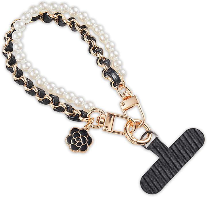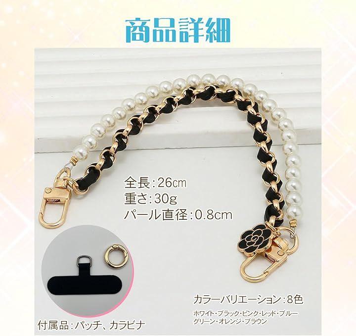 パールの上品さと、合皮編み込みの程よいカジュアル感を組み合わせた 2連デザインのスマホ用ハンドストラップです。