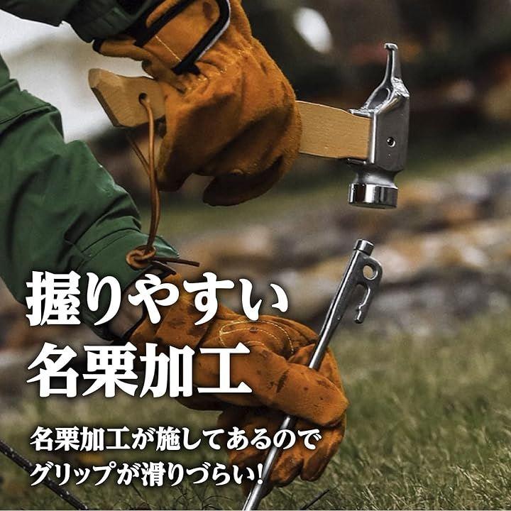 手にしっかりフィットする名栗加工の天然木グリップで、テントやタープ設営を快適にサポート。