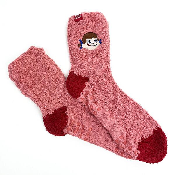 寒い日もぽかぽか★足元の冷え・防寒対策にぴったりなペコちゃんのルームソックスです♪まるでマシュマロのような触り心地♪程よく伸縮するのでリラックスタイムにも最適です。足元に付いたすべり止めでフローリングも安心してご利用できます。かわいいボックス型パッケージ入りでギフトにもおススメです♪【サイズ:約22cm~25cm】