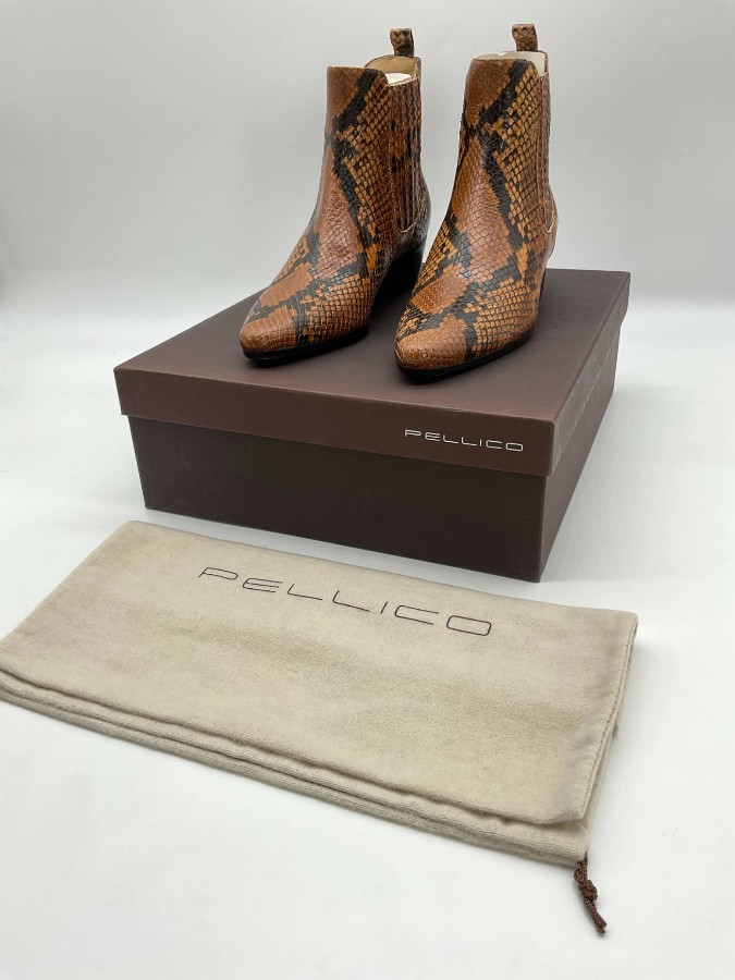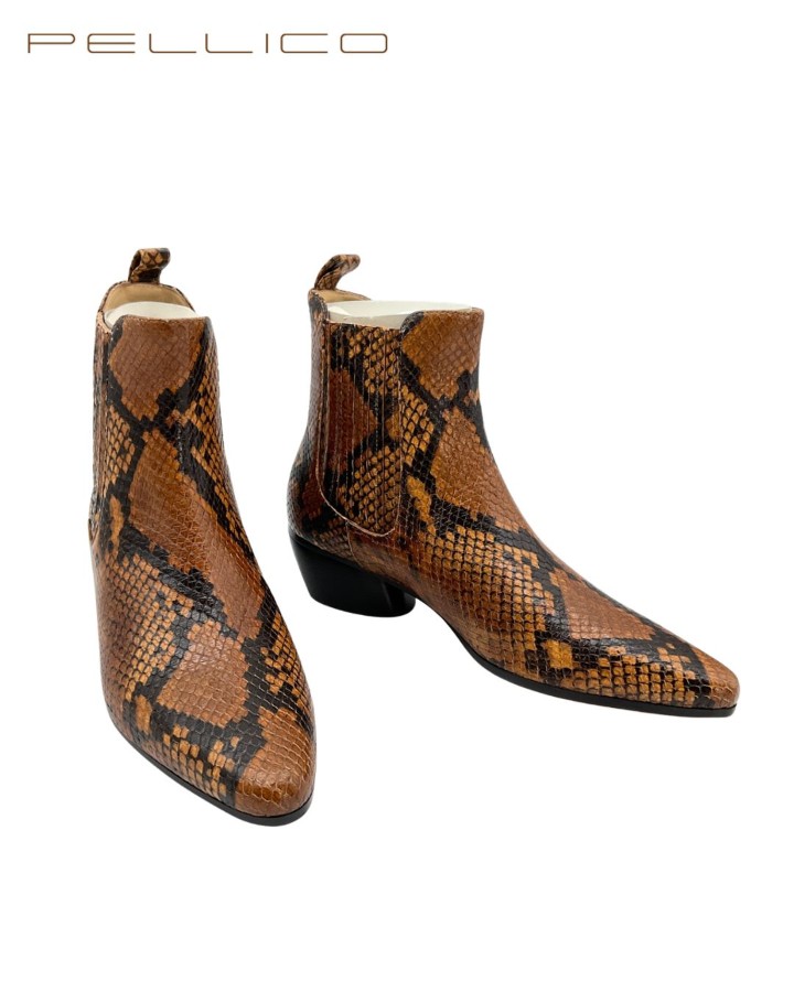 【アイテム名】:パイソンサイドゴアヒールブーツ