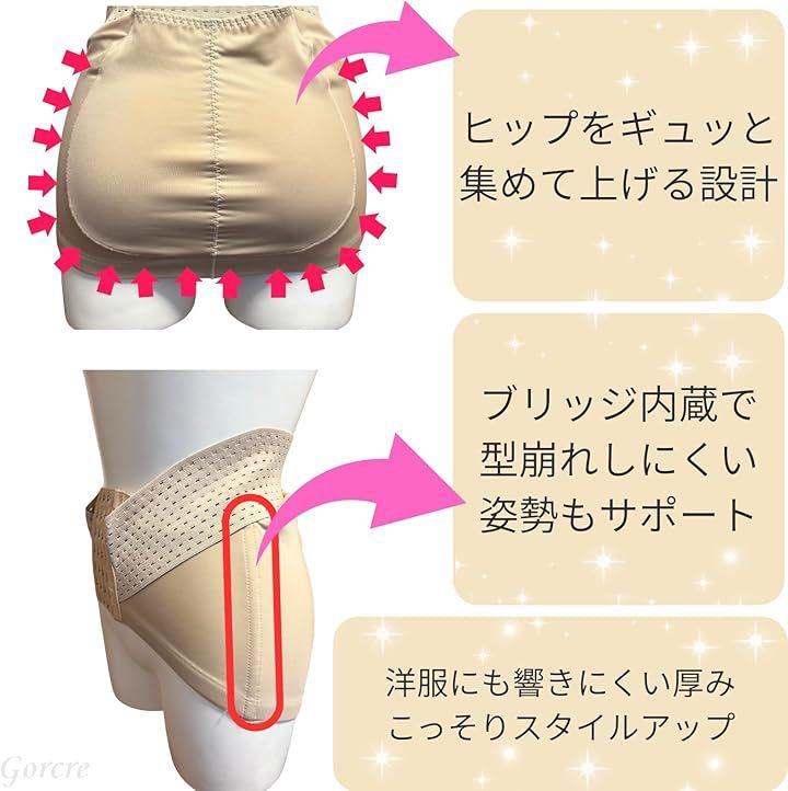 「心地良い締め付けで骨盤補正」と「下から持ち上げ設計でヒップアップ」美スタイルのサポート。