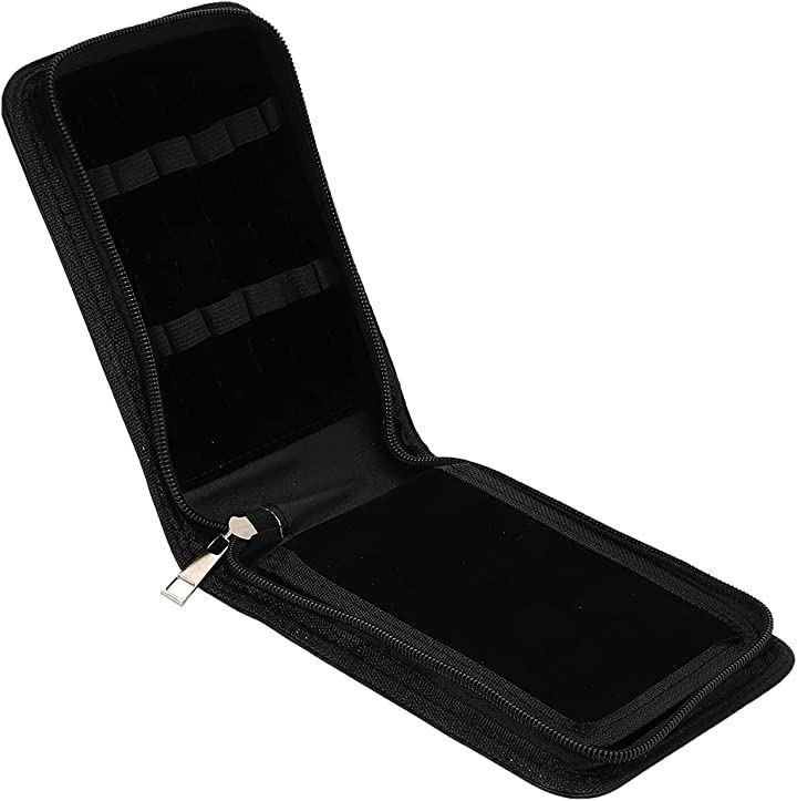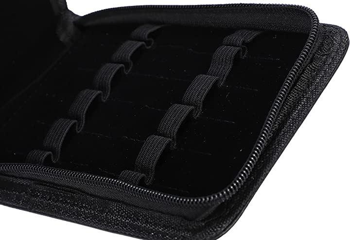 6本と6本をゴム素材のホルダーで収納して、その中間に柔らかな起毛生地が張られた間仕切りがあり、多少の衝撃でもキズが付きにくい構造になっています。
