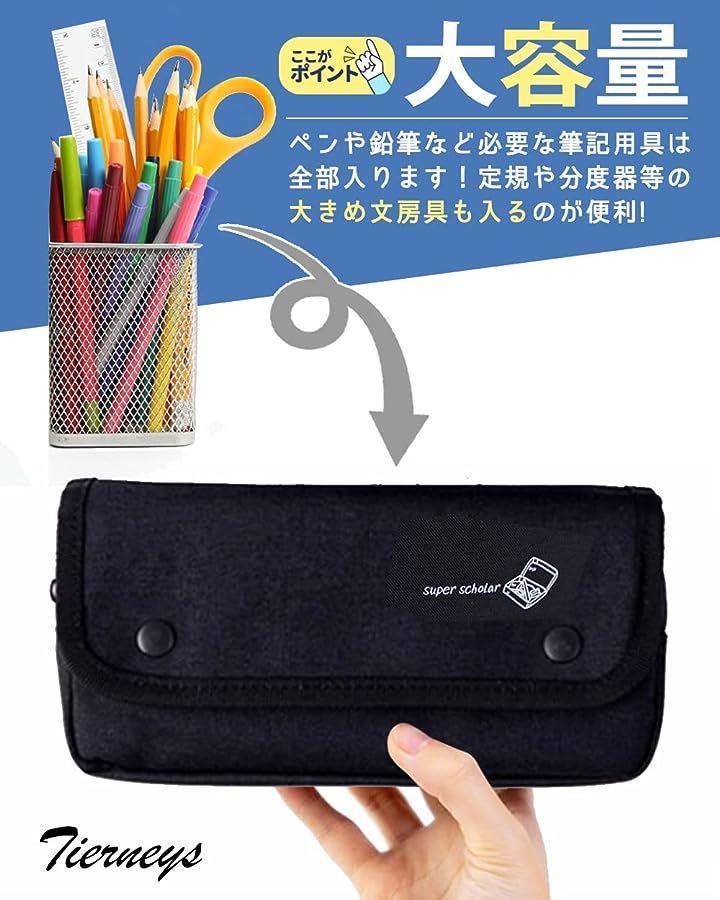・ペン類なら30~50本、他にもハサミ、定規、カッター、消しゴム、修正ペンなど、いろいろな文房具をたっぷり収納できる筆箱です。