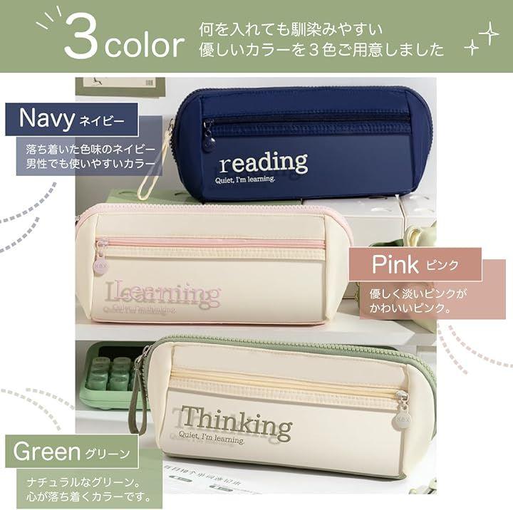 カラーは使いやすいネイビー(reading)、ピンク(Learning)、グリーン(Thinking)、女性にも男性にも使える落ち着いた3色を用意しました。
