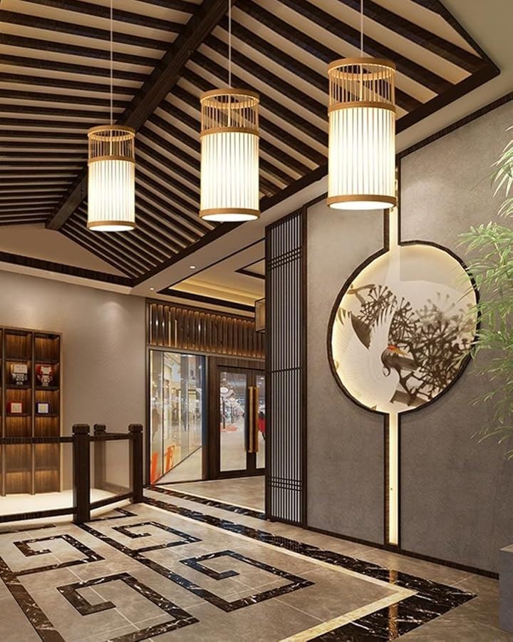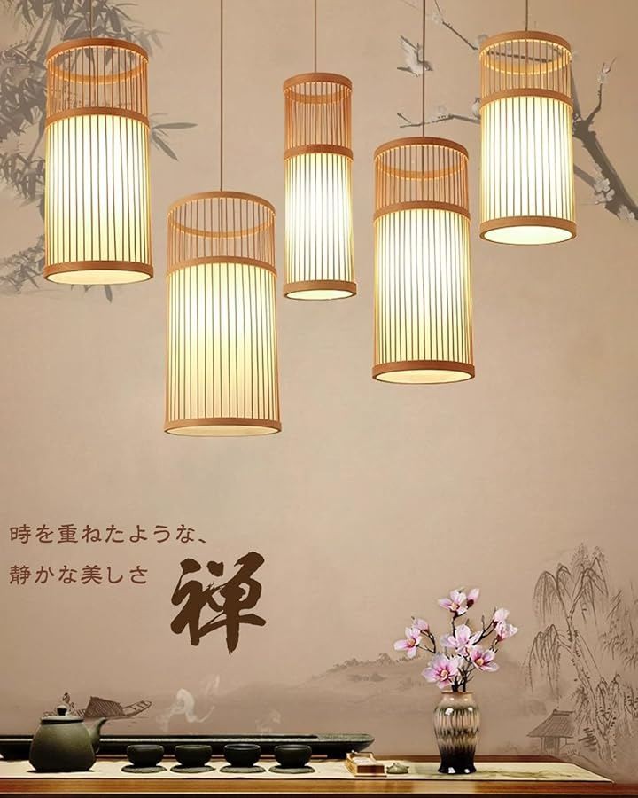 「伝統と現代を融合した和風デザイン 」上質な天然竹を丁寧に編み込んだペンダントライト。
