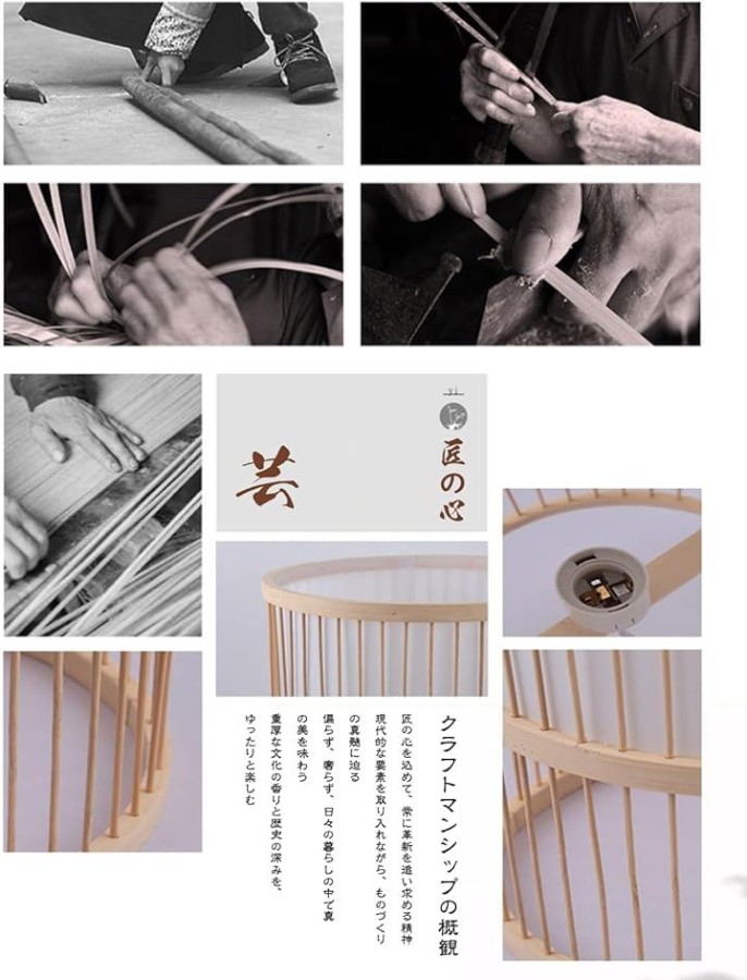 「職人ひとつひとつ手作り」吊り下げライトは高温処理を施した厳選天然竹を使用し、防カビ・防虫対策も万全。
