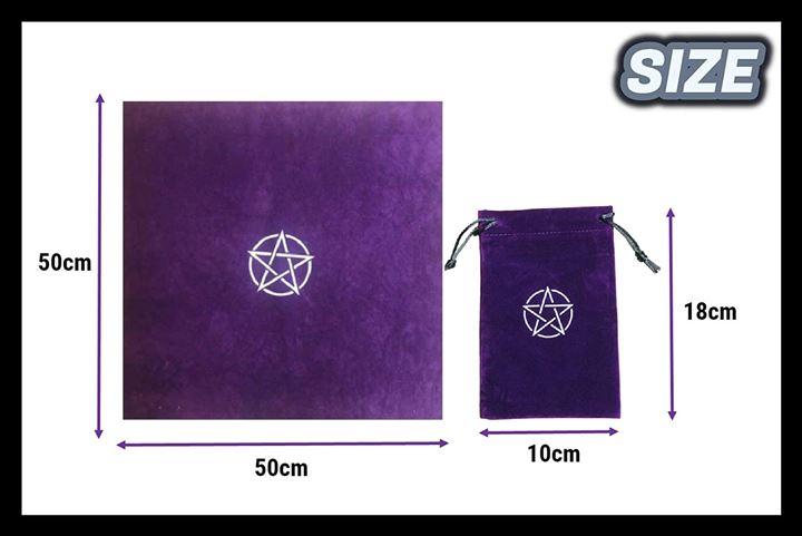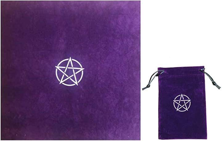 クロスは50cmx50cmで中心にペンタグラムのプリント、タロットクロスとしては小ぶりなタイプです。