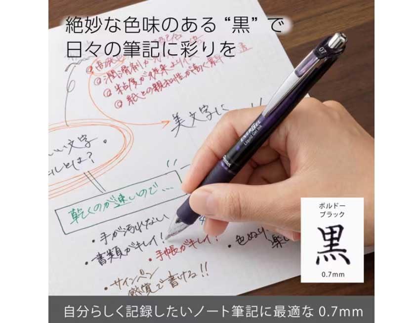 【商品説明】スッと書けて、サッと乾く エナージェルインキ○なめらかな書き心地○筆跡の速乾性○濃く鮮やかな筆跡・高発色の着色剤配合・潤滑剤が従来のゲルインキの3倍※・筆記時の粘度が従来のゲルインキより低い・紙との親和性が高く素早く浸透※当社比、ボール径0.5/0.7において