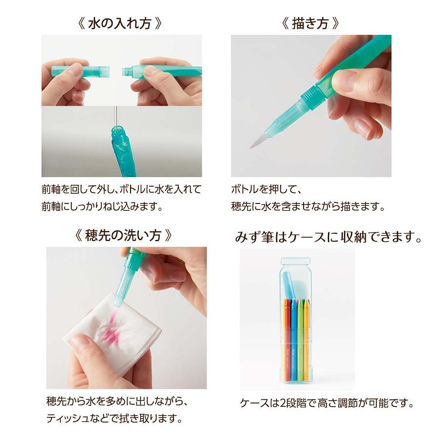 色鉛筆を使った塗り絵や、みず筆を用いた水彩表現まで幅広い色の表現が可能。