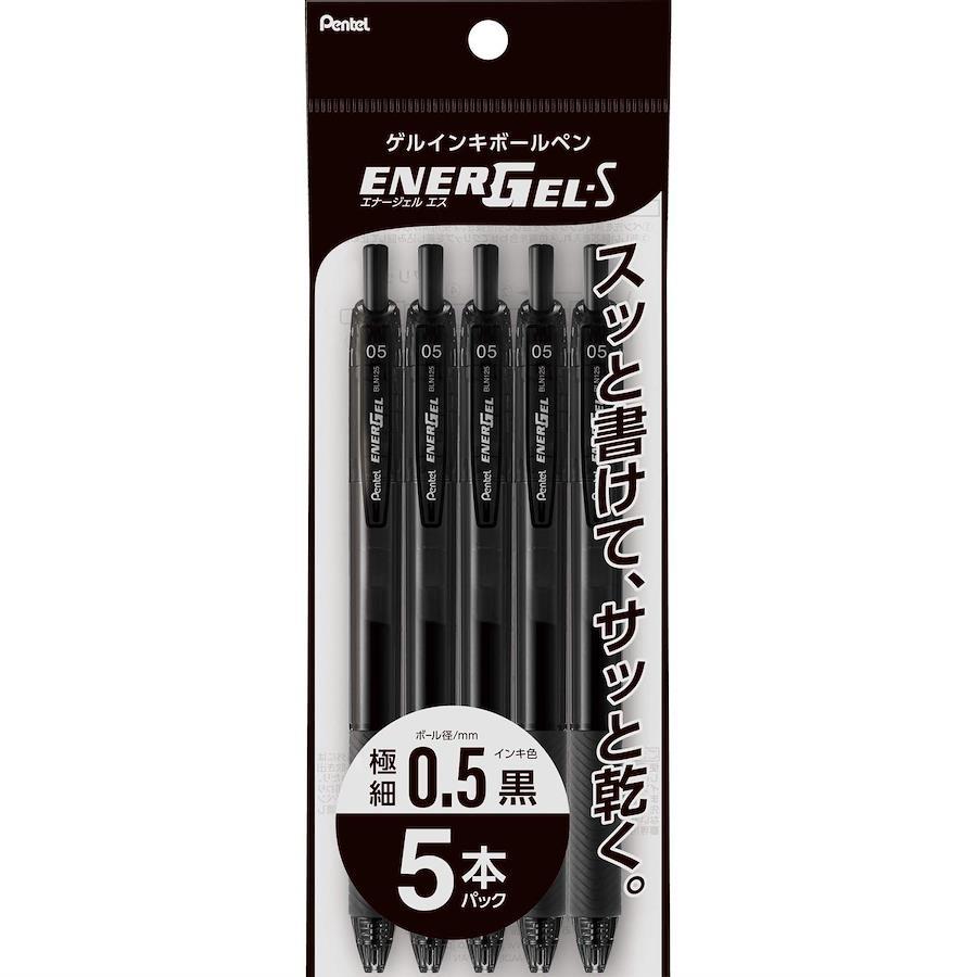 ゲルインキボールペンエナージェルSシリーズはスリムボディのボールペン。