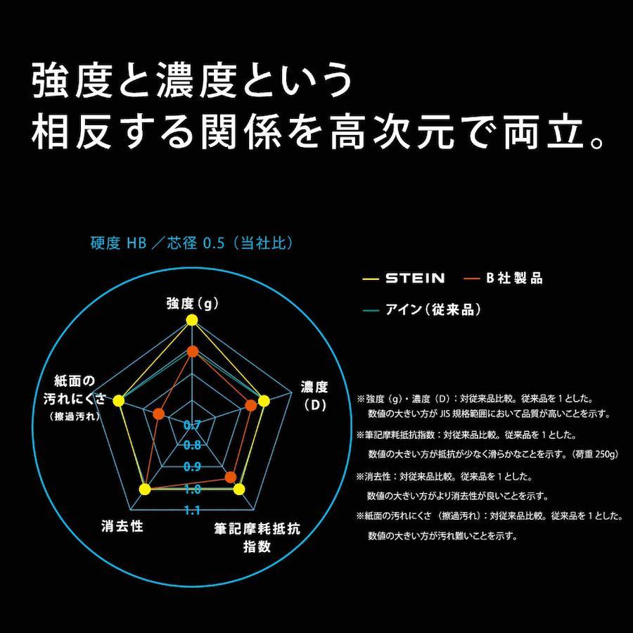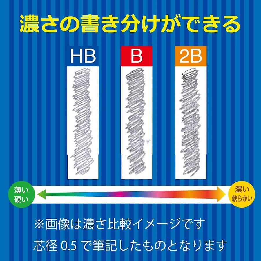 0.3mmシャープペン替芯の、硬度HB・B・2Bと3種類がひとつにセット。イラストなど線の使い分けや、自分に合う芯径を探してみる等、様々な用途に。芯の内部に強化シリカによるフレームを形成させて内側から芯全体を支えるという従来にない発送から生まれたテクノロジーで、最高レベルの強度を実現しました。※シャープペン本体は付属していません。
