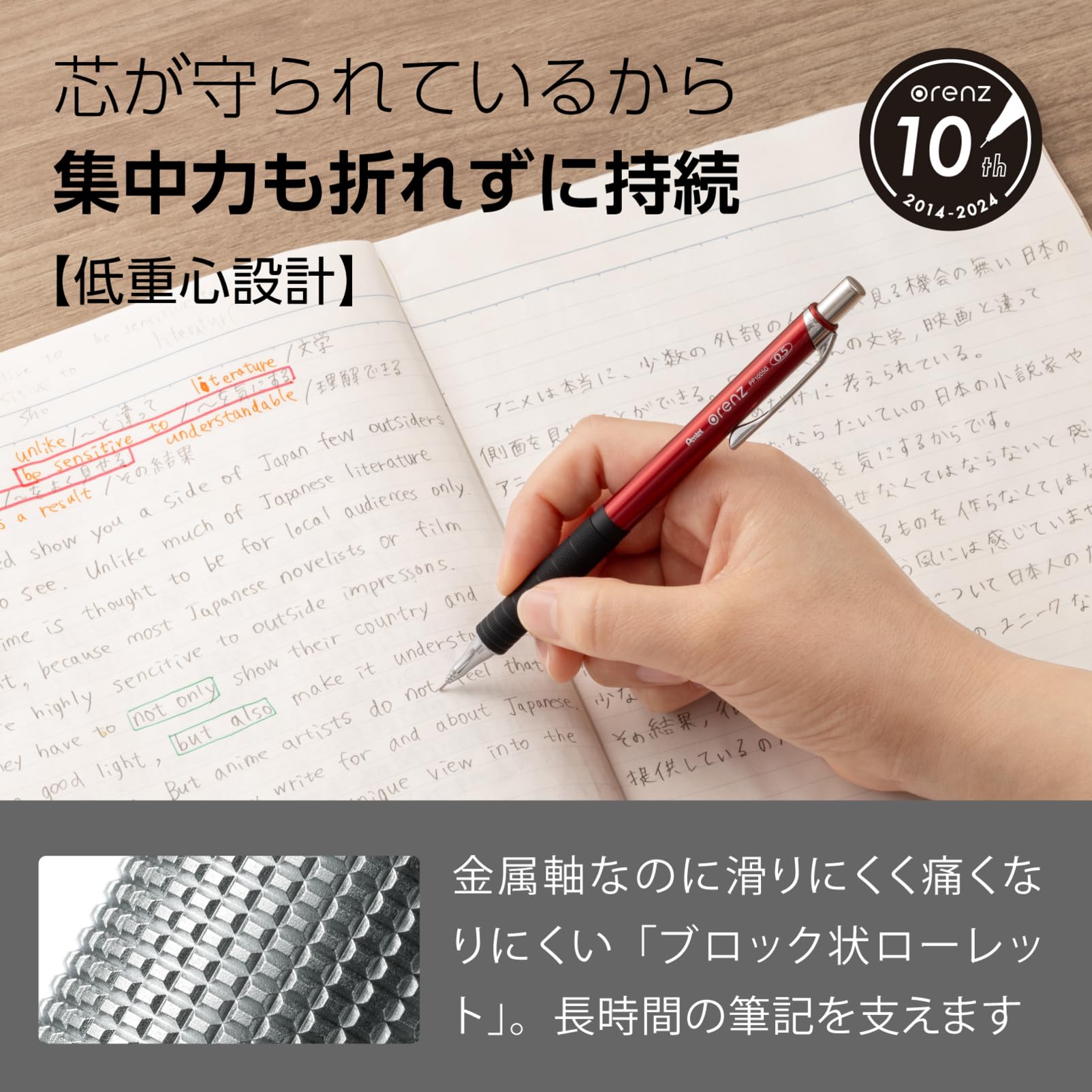 【特長】ローレット部分がリニューアル 折れないシャープペンシル「オレンズ」【芯径】0.5【本体色】レッド【1本あたりサイズ/重さ】幅 13 ×奥行10mm × 長さ 145mm/14g【材質】金属部分=真鍮・鉄・ステンレス 樹脂部分=ABS【免責事項】メーカーによる商品リニューアルに伴いパッケージが変更が行われた場合、新パッケージでお届け致します事ご了承願います。
