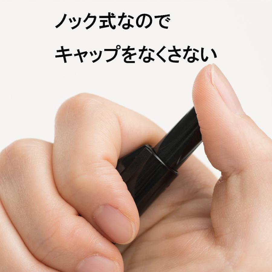 【特長】キャップのないノック式タイプ油性マーカー 丸芯・細字