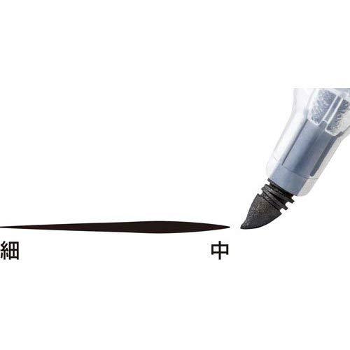 新開発のスリットペン先により、1本で細字から中字まで使えます。書き方で文字や線に強弱をつけることができるので、表現力が上がります。トメ、ハネ、ハライも可能。インクが薄くなったら数回プッシュで濃さが戻り、直液式なので、最後までカスレず、鮮やかに書けます。