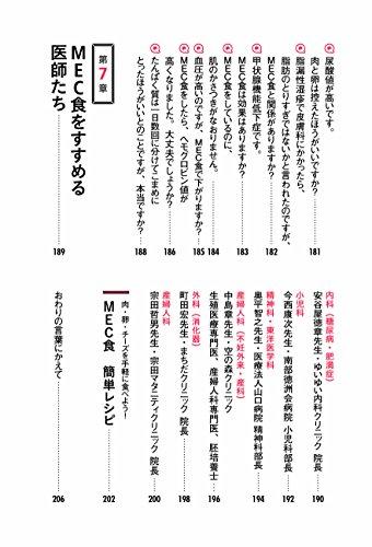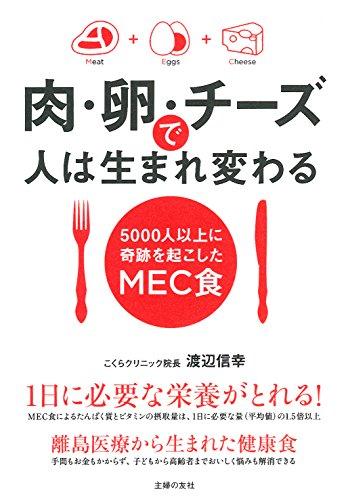 肉・卵・チーズを食べる健康法「MEC食」。沖縄県那覇市にある、こくらクリニック院長、渡辺信幸先生が提唱。離島医療の過酷な経験から、「病気にならない体になるためにはどうしたらいいか」を考え抜いて、生み出しました。肉200g、卵3個、チーズ120gを1口30回カムカムする(よくかむ)。たったこれだけで、1日に必要な栄養がビタミンC以外は、ほぼとれてしまうのです。約15年の間に、5000人以上が、やせた、きれいになった、健康になったという実績あり。それも、-10kg、20kgは当たり前! 30kg、40kgやせた人も続出。また、糖尿病、高血圧、関節リウマチ、発達障害(自閉症)、アトピー、不妊、双極性障害、円形脱毛症…いろんな疾病がよくなったというエビデンスが多数。実践する老人ホームではインフルエンザ患者が出ないという報告も!子どもから高齢者まで一緒にできて、お金も手間もかからない。日本はもちろん世界中のどこにいても手軽に続けられます。「肉食やせ」MEC