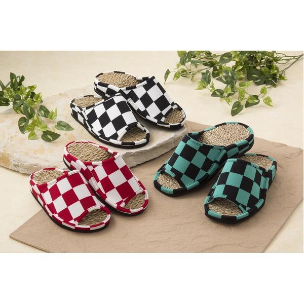 本商品はお取り寄せ商品のため、稀にご注文入れ違い等により欠品・遅延となる場合がございます。誠に恐れ入りますが、何卒ご了承ください。また、以下の場合には追加送料がかかる場合がございます。・沖縄、離島および一部地域への配送時 ・同梱区分が異なる商品の複数購入時 【同梱区分】:TS 1248 履き心地抜群! い草が心地よい健康スリッパ 底面の大きなカーブが土踏まずにしっかりフィット! 足裏全体をしっかり支えるので、足裏にかかる荷重が分散され、負担が軽減されます。高品質ない草を使用しており、い草ならではの香りが楽しめます。い草には抗菌作用・空気の浄化作用・調湿効果などがあるとされています。通気性が良くさらっとした肌触りが素肌にも心地よく、ムレを防ぎ、一年中快適にご使用いただけます。編んだい草の凹凸が足裏を程よく刺激するので気持ちいい! さらに、い草はクッション性にも優れているため、足への衝撃を和らげます。また、い草は消臭効果にも優れ、足の臭い対策にも有効とされています。伝統的な和柄の一つであり、現代でも広く人気の市松柄を採用。市松模様は格子模様の一種で、二色の四角形を交互に配した模様です。いわゆるチェック柄と同様の模様を指します。古くは古墳時代の埴輪の服装や法隆寺・正倉院の染織品にも見られた歴史の長い模様です。元々は石畳のような柄だったため「石畳」と呼ばれていましたが、江戸時代中期に「佐野川市松」という歌舞伎役者が舞台でこの模様の袴(はかま)を着用し、当時の女性の間で大流行しました。それ以来、一般的にこの模様が「市松模様」と呼ばれるようになりました。市松模様は、幅広い世代に広く人気を博しています。シンプルながら味のある市松模様のスリッパで、室内でもおしゃれを楽しめます。■カラー グリーン×ブラック ■材質 本体:い草、ポリエステル 底:EVA(発泡スポンジ) ■サイズ(約) 26.5×11×10cm 対応サイズ:25~27cm ヒール高さ:1.5~4cm ■重量(約) 169g(片足) ■生産国 日本製