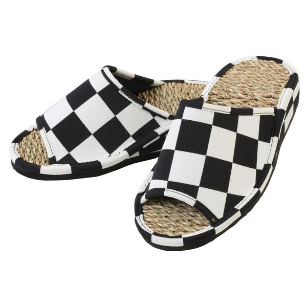 本商品はお取り寄せ商品のため、稀にご注文入れ違い等により欠品・遅延となる場合がございます。誠に恐れ入りますが、何卒ご了承ください。また、以下の場合には追加送料がかかる場合がございます。・沖縄、離島および一部地域への配送時 ・同梱区分が異なる商品の複数購入時 【同梱区分】:TS 1248 履き心地抜群! い草が心地よい健康スリッパ 底面の大きなカーブが土踏まずにしっかりフィット! 足裏全体をしっかり支えるので、足裏にかかる荷重が分散され、負担が軽減されます。高品質ない草を使用しており、い草ならではの香りが楽しめます。い草には抗菌作用・空気の浄化作用・調湿効果などがあるとされています。通気性が良くさらっとした肌触りが素肌にも心地よく、ムレを防ぎ、一年中快適にご使用いただけます。編んだい草の凹凸が足裏を程よく刺激するので気持ちいい! さらに、い草はクッション性にも優れているため、足への衝撃を和らげます。また、い草は消臭効果にも優れ、足の臭い対策にも有効とされています。伝統的な和柄の一つであり、現代でも広く人気の市松柄を採用。市松模様は格子模様の一種で、二色の四角形を交互に配した模様です。いわゆるチェック柄と同様の模様を指します。古くは古墳時代の埴輪の服装や法隆寺・正倉院の染織品にも見られた歴史の長い模様です。元々は石畳のような柄だったため「石畳」と呼ばれていましたが、江戸時代中期に「佐野川市松」という歌舞伎役者が舞台でこの模様の袴(はかま)を着用し、当時の女性の間で大流行しました。それ以来、一般的にこの模様が「市松模様」と呼ばれるようになりました。市松模様は、幅広い世代に広く人気を博しています。シンプルながら味のある市松模様のスリッパで、室内でもおしゃれを楽しめます。■カラー ホワイト×ブラック ■材質 本体:い草、ポリエステル 底:EVA(発泡スポンジ) ■サイズ(約) 25×10.5×10cm 対応サイズ:22.5~24cm ヒール高さ:1.5~4cm ■重量(約) 144g(片足) ■生産国 日本製
