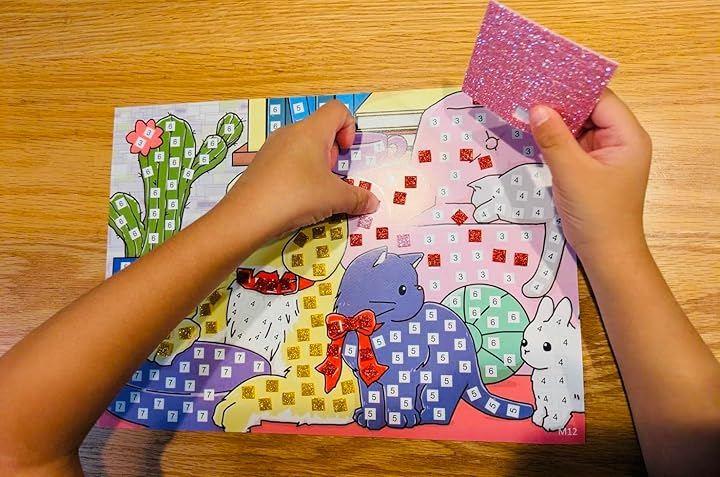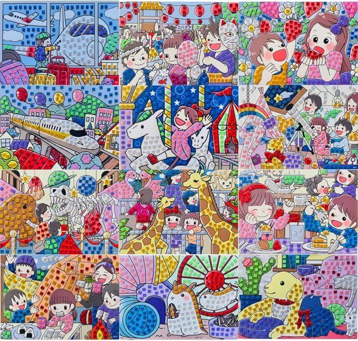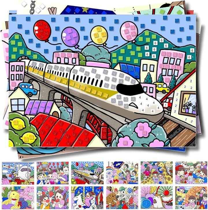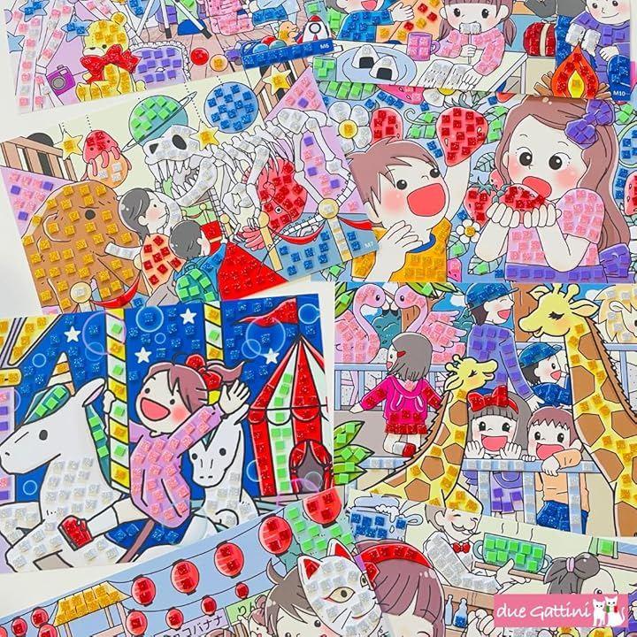 「モザイクシール貼りセット」キューブタイプのモザイクシールを台紙の数字に合わせて貼るだけで素敵な作品が完成します。