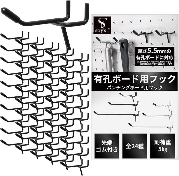 「ボードの厚さ5.5mm対応版」パンチングボード用フックはホームセンター等で一般的に販売されている厚さ5.5mm、ピッチ25mmの有孔ボードに対応したフックになります。