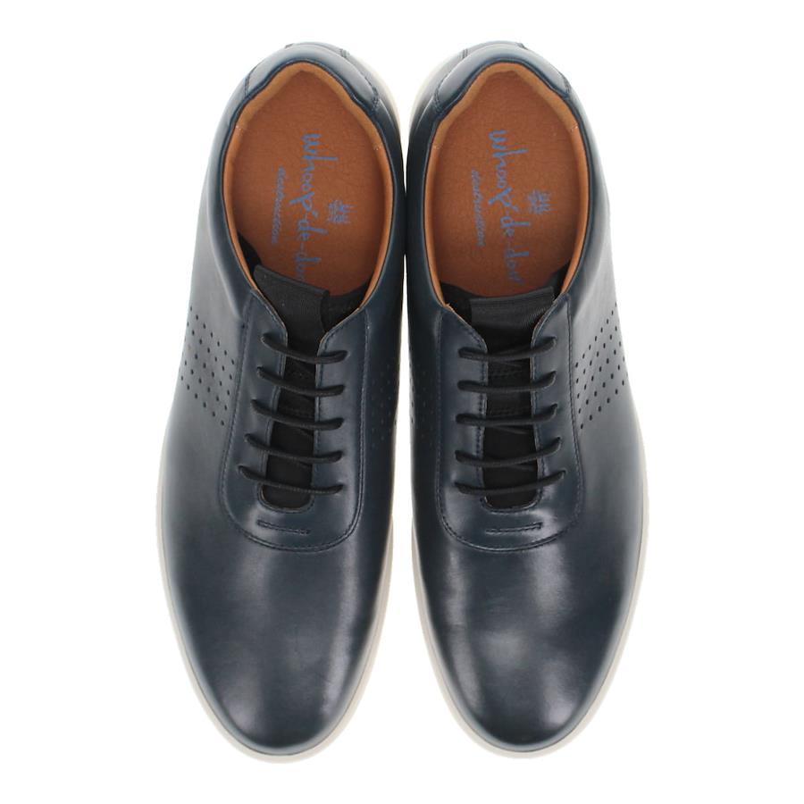 | パンチングライン・シープレザースニーカー 【素材】 アッパーにはやわらかなシープ(羊)革を用い、タン〜履き口にはライクラ(伸縮性のある繊維)が含まれた生地を使用しています。 ※本革を使用している為、多少のムラや小傷、個体差などがございます。 【デザイン】 柔らかなシープレザースニーカーにパンチングデザインと生地の履き口を合わせたカジュアルスニーカー。 生地部分に使用されているライクラ【lycra】とは、1959年に米国デュポン社で開発された、クモの糸のように細く透明で、引っ張ると4〜7倍にも伸び縮みする合成繊維のこと。 優れた伸縮性を持っているため、足への絶妙なフィット感を生みだします。 ゴム製の替え紐も付属しており、付け替える事で紐をほどくことなく、靴ベラ一本でスリッポンのように着用する事もできます。 シンプルなデザイン性でいつでもどこでも使いやすく馴染みやすい1足です。 【サイズ】 普段通常の革靴で25.5cm、スニーカーで26.5-27cmを着用するスタッフで<41/25.5cm>でジャストサイズでした。 ※サイズ感は個人差がございますので参考程度にお考え下さい。 ■ブランド...whoop'-de-doo' destruction ■カラー...BLACK,NAVY,WHITE ■アッパー素材....羊革×ライクラ(ポリウレタン繊維) ■底材.....ラバー ■ヒール...約2cm ■重さ(片足)...約375g ■製法...オパンケ製法 ■中国製 *上記は全て25.5cmで計測した数値です。 *多少の誤差が生じる場合がございますので予めご了承下さい。 whoop de doo co.,ltd whoop'-de-doo' フープディドゥ |