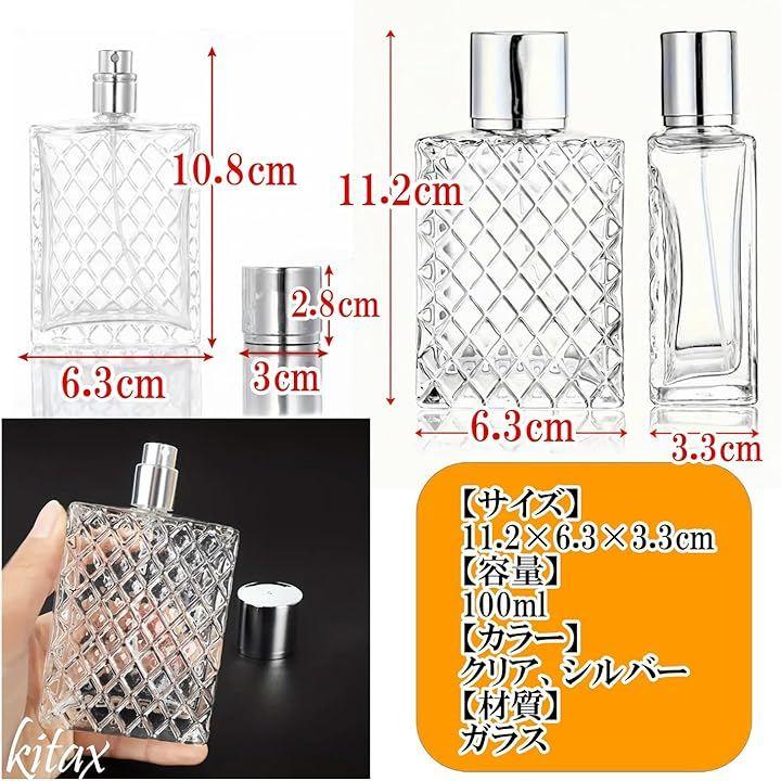「サイズ」11.2x6.3x3.3cm 「容量」100ml 「カラー」クリア、シルバー 「材質」ガラス