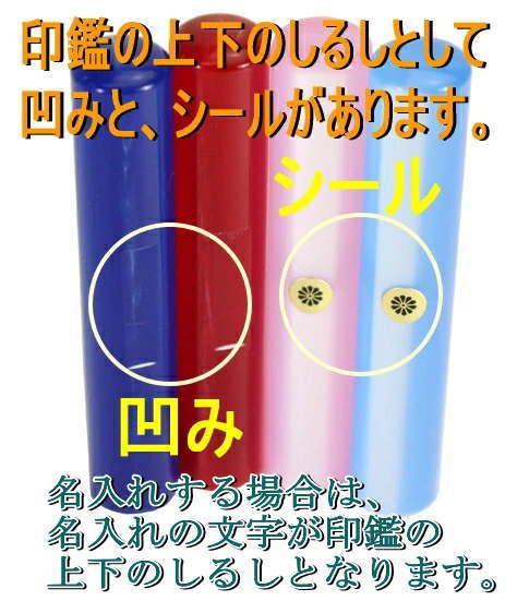 印鑑の上下のアタリ目印を削ってある凹みとシール、