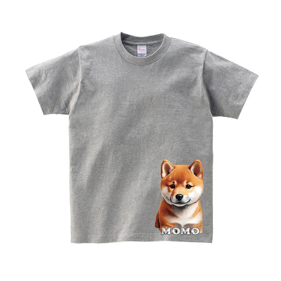 名入れのできるデッサン風の柴犬の子犬Tシャツです。「MOMO」の部分をお好きなアルファベットに変更できます。※画像ははめ込み画像となり、実際とは多少異なりますので予めご了承ください。 ※サイズ表をよくご確認の上ご購入ください。 ※受注生産となるため、返品、交換はご遠慮ください。