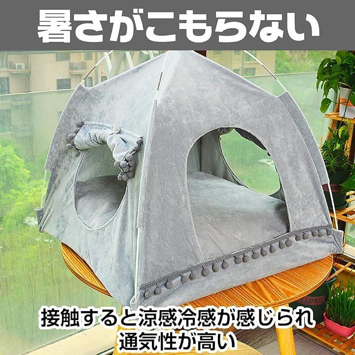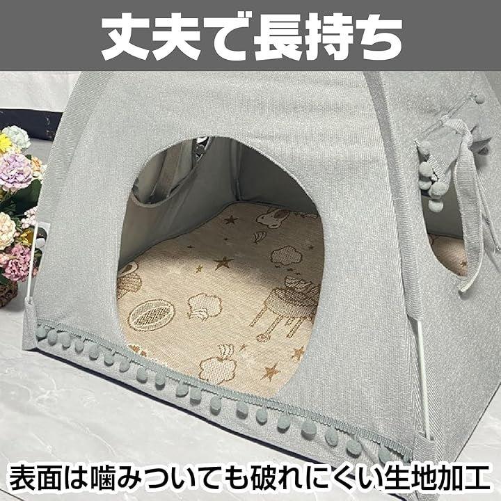 「多機能なペットテント型ベッドで快適な空間を提供」 このペットベッドはテント型のユニークなデザインで、猫や小型犬が安心してくつろげる落ち着いた空間を提供します。