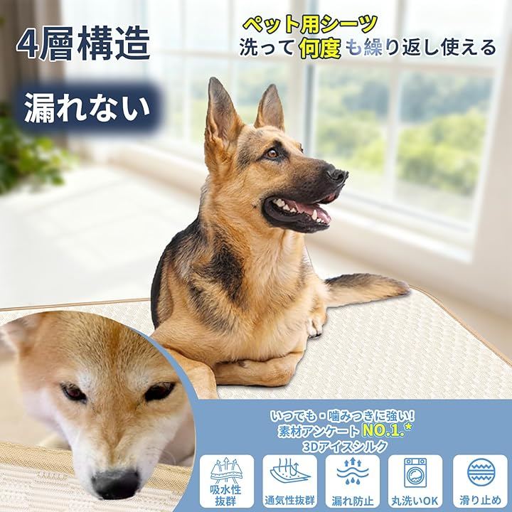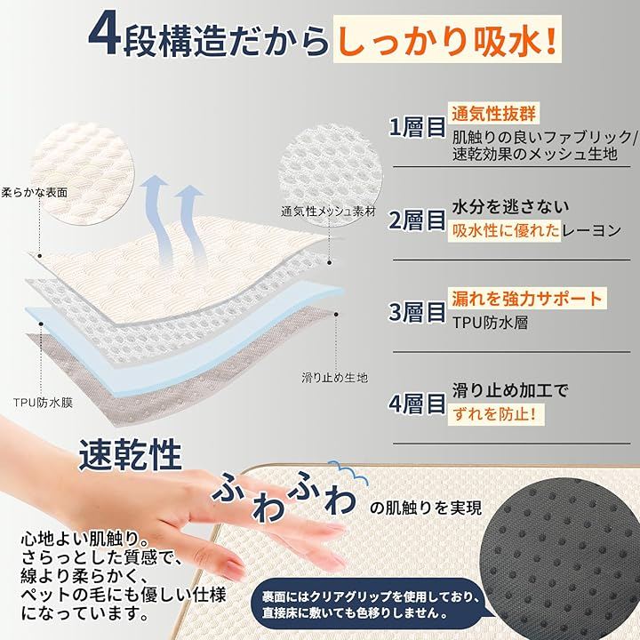 「4層防水・滑り止めゴム底で安心使用」ペット用冷却マットの4層構造の高密度ハイブリッド生地が吸水力を最大化。