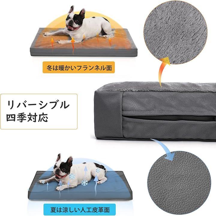 「リバーシブルデザインで夏も冬も快適 」一面は保温性の高い短绒面で冬に最適、もう一面は耐刮防水の人造革面で夏に涼しく、犬 夏 ベッドとしてペットに快適な休息を提供します。