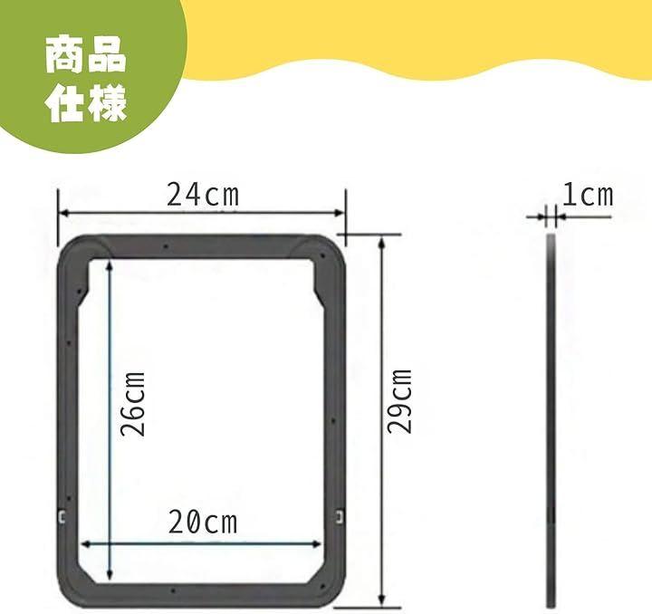 フレームサイズは24x29cmで、ペットの目線や動線に合わせた柔軟な設置が可能。
