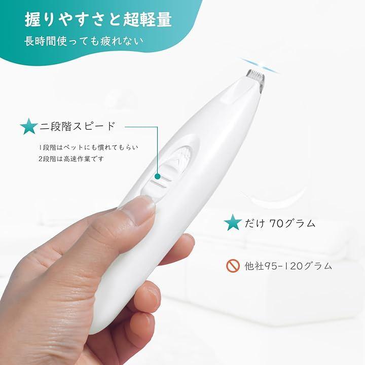 「超軽量&握り心地」このバリカンは初心者向け、コンパクトなサイズであり、小回りが利きやすく、肉球や耳、顔回りなど汚れが付きやすい箇所のトリミングに最適です。
