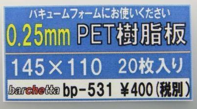 bp531 PET 樹脂版 0.25mm 145×110 20枚入りバキュームフォームにお使い頂けます。