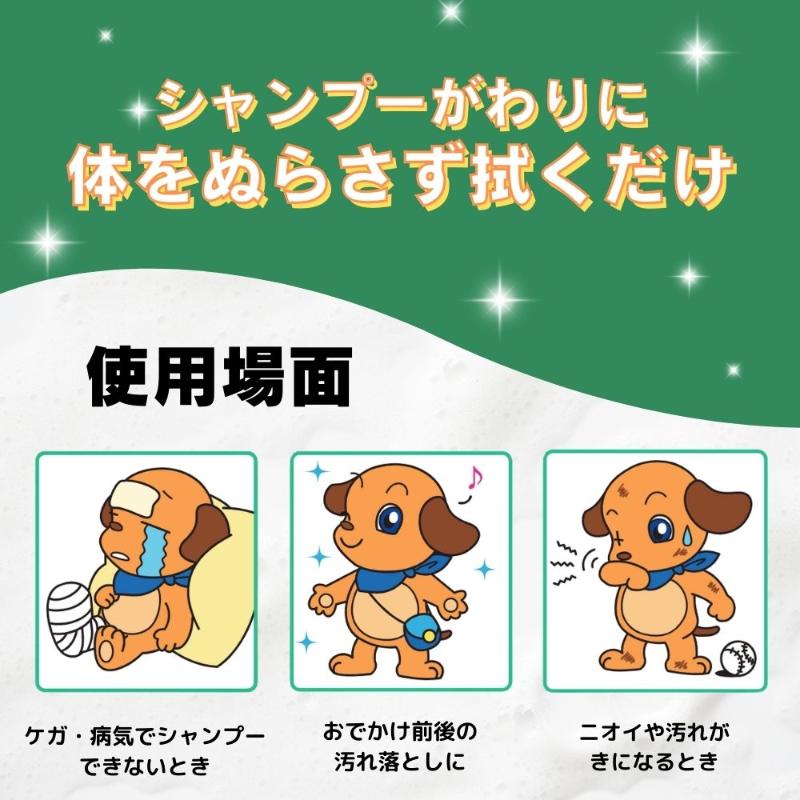・シートの繊維が汚れ・ハウスダスト・花粉をしっかりキャッチ。・なめても安心な洗浄成分(食品添加物)、弱酸性、低刺激処方。・コラーゲンとプラセンタエキスが皮ふと被毛にうるおいと輝きを与える。・ほのかなソープの香り。・シートサイズ:33×18cm<用途>毎日の皮ふ・被毛ケアに。お散歩前後、シャンプーができない時などの汚れ落としに。